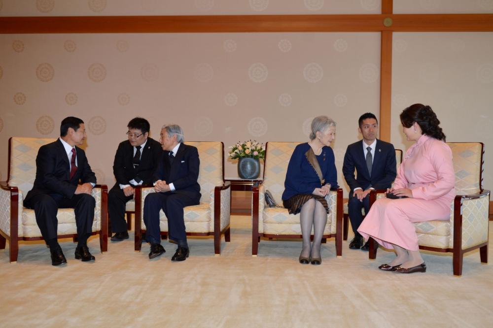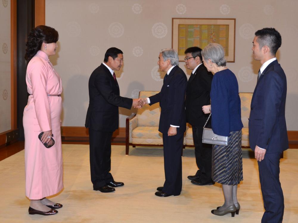 Япон улсын Эзэн хаан төрийн тэргүүн боловч улс төрийн асуудалд оролцдоггүй онцлогтой. Засгийн газар, парламентын гаргасан шийдвэрийг батлан гарын үсэг зурж, ард түмний эв нэгдлийн бэлгэ тэмдэг болдог Эзэн хаан хоёр орны дипломат харилцаа, ард түмний найрамдалт хамтын ажиллагаа өргөжин хөгжиж байгаад сэтгэл өндөр байгаагаа дурьдаад, цаашид улам гүнзгийрүүрүүлэхийг хүслээ.