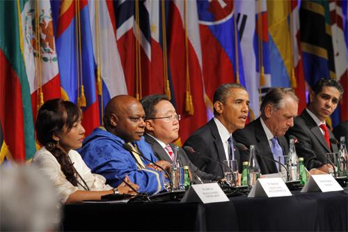 Тус хэлэлцүүлгийг нээж АНУ-ын Ерөнхийлөгч Барак Обама хэлсэн үгэндээ “Олон Улсад иргэний нийгэм гэдгийг хүмүүс хамтран нэгдэж, үзэл бодлын хүрээгээрээ өөрсдөө зохион байгуулагдахыг хэлдэг. Харин Монгол Улс иргэний нийгмийн байгууллагуудыг хязгаарлалгүйгээр бүртгэж, дуу хоолойг сонсож чаддаг учраас энэ удаагийн хэлэлцүүлэгт Ерөнхийлөгч Ц.Элбэгдоржийг урьж өөрийн орны туршлагаасаа хуваалцахыг хүссэн юм” хэмээгээд “Иргэний нийгэм нь хувь хүний эрх ашгийг хамгаалж байдаг. Төр бол нийтийн эрх ашгийг хамгаалж байдаг. Энэ хоёр нөхцөлдөж байж сая жинхэнэ зөв нийгэм төлөвшинө” гэлээ. Мөн Ардчилсан орнуудын хамтын нийгэмлэгийг Монгол Улс сүүлийн хоёр жил даргалж байгаад тус нийгэмлэгийн Сайд нарын долдугаар бага хурлыг Улаанбаатар хотноо амжилттай зохион байгуулсанд баяр хүргэлээ.
