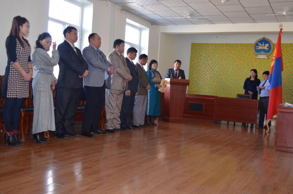Тэгээд л төрийн бүх шатны албан хаагчид байна. Татварынхан, хил гаалийнхан гээд.......нэг их гоё сайхан хувцас өмсч байгаад, шал цөмөртөл сөхөрч сөгдөөд, Монгол Улсын Төрийн далбааг нортол нь үнсч үлгээд л баруун гараа цээжин дээрээ тавьж байгаад сүртэй тангараглахыг нь яана гээ. Эгээ л африкийн дарангуйлагч орнуудын цэрэг цагдаагийнхан шиг. Энгэртээ зүүсэн одон тэмдэг нь ч гэж яг л тэдний цэргийнхнийг санагдуулахыг яана гээч.