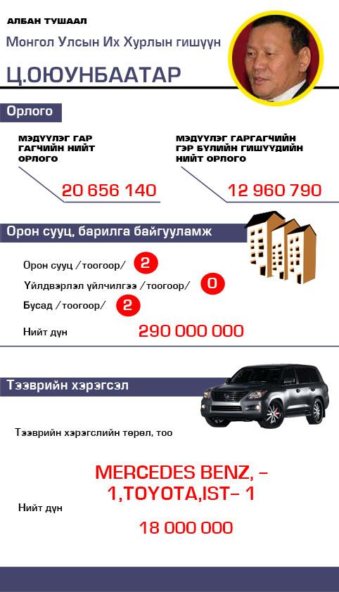 Ц.Оюунбаатар гишүүний хөрөнгө, орлого