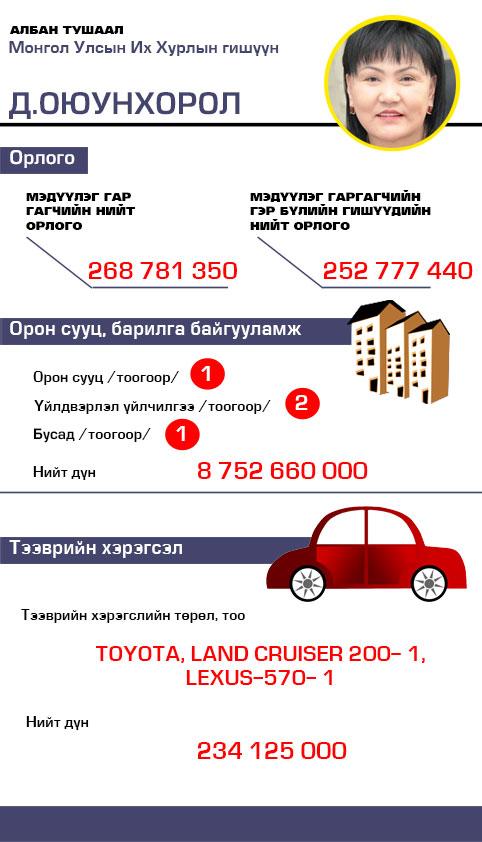 Д.Оюунхорол гишүүний хөрөнгө орлого