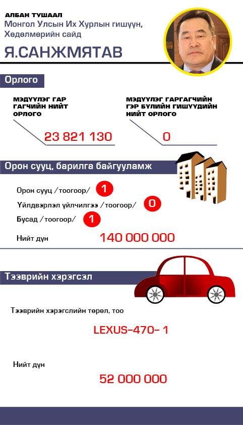 Я.Санжмятав гишүүний хөрөнгө, орлого