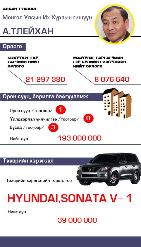 А.Тлейхан гишүүний хөрөнгө, орлого