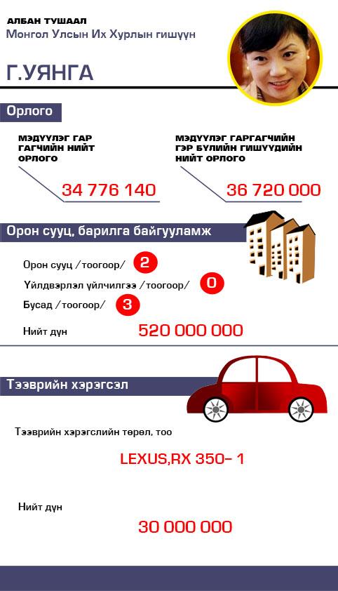 Г.Уянга гишүүний хөрөнгө, орлого