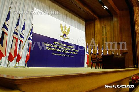 Өнөөдөр Ардчилсан намын Үндэсний зөвлөлдөх хорооны хуралдаан өнөөдөр 15:00 цагт зарлагдсан. Гэтэл хуралдааныг 18:00 цагт болгон хойшлуулсан юм. Яг одоогоор хэвлэл мэдээлэлд хаалттайгаар Төрийн ордны Их танхимд товлосон ҮЗХ-ны хурал эхлэхэд бэлэн болж тайзаа засчээ.