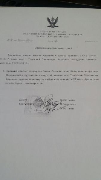 Эх хувь нь ийм байтал өчигдрөөс хойш АН-ын дарга Н.Алтанхуяг, тус намын ерөнхий нарийн бичгийн дарга Ц.Оюундарь нар хар дээр цагаанаар бичсэн тогтоолыг "орчуулж" тайлбарлаад байгаа нь намын гишүүдийг бухимдуулах болов. Тиймээс энэ тогтоолыг дахин бүрэн эхээр нь харуулах нь зүйтэй байх. Уг нь олон дахин үзүүлмээргүй л алдаатай бичигдсэн "эд" байна билээ.