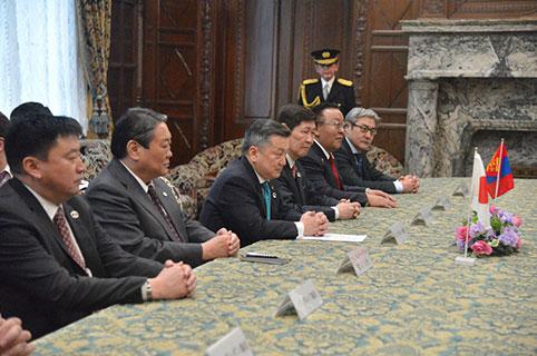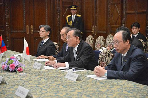 Уулзалтын үеэр УИХ-ын дарга З.Энхболд, Монгол, Японы харилцааны хөгжилд Япон Улсын парламентын Зөвлөхүүдийн танхим, түүний гишүүд, Зөвлөхүүдийн танхим дахь Япон, Монголын найрамдлын бүлгийн гишүүд идэвхтэй хувь нэмэр оруулж байна. Сүүлийн жилүүдэд Монгол, Японы улс төрийн харилцаанд итгэлцэл бэхжиж, хоёр орны харилцаа, хамтын ажиллагаа өргөжин хөгжиж байгаад сэтгэл хангалуун байна. Цаашид улс төр, эдийн засаг, худалдаа, хөрөнгө оруулалтын харилцааг Стратегийн түншлэлийн зарчмын дагуу улам гүнзгийрүүлэн хөгжүүлэх хүсэлтэй байдгаа УИХ-ын дарга илэрхийлэв. Мөн хоёр орны Ерөнхий сайд нарын гарын үсэг зурсан Эдийн засгийн түншлэлийн хэлэлцээр /EPA/-ийг Монгол Улсын Их Хурал богино хугацаанд соёрхон баталлаа. Монгол Улс аж үйлдвэр, дэд бүтэц, эрдэс баялгийн хайгуул, олборлолтын үйлдвэрлэлд японы дэвшилтэт, байгаль орчинд ээлтэй техник технологийг ашиглах, нэмүү өртөг шингэсэн бүтээгдэхүүн үйлдвэрлэхэд Японы дэмжлэгийг авах хүсэлтэй байна. Түүнчлэн монголд хэрэгжүүлэх томоохон төсөл хөтөлбөрт японы оролцоог ханган ажиллахад бэлэн байна. Мал аж ахуй, газар тариаланг эрчимжүүлэх, хөдөө аж ахуйн бүтээгдэхүүнийг олон улсын стандартын дагуу боловсруулж, экологийн цэвэр бүтээгдэхүүн үйлдвэрлэхэд Монголын Засгийн газар ихээхэн анхаарал хандуулж байгаа бөгөөд энэ чиглэлд танай улстай хамтран ажиллах эрмэлзэлтэй байна.