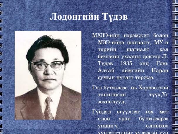 ХХ зууны сүүлчийн хагас, ХХI зууны эхэн үед Л.Түдэв гэдэг хүнтэй нэгэн үед хамт ажиллаж, амьдарцгаасан бидний үеийнхэн бас азтай, бахархмаар ч юм шиг. Миний хувьд л гэхэд агуу их Б.Ринчен, Ц.Дамдинсүрэн нарыг ойроос харж байсан. Л.Түдэв гуайг зурагтаар ярихад нь шимтэн сонсдог, сүүлдээ ч бас МХЗЭ-ийн Төв хорооны I нарийн бичгийн дарга байхад нь хэд хэдэн удаа уулзаж, зэмлэл, сайшаалын үгийг нь дуулж явсан. 1990 оны халуун үед Үндсэн хуулийг хэлэлцэхэд АИХ-ын депутатын хувьд мөн Намын Төв хорооны тэргүүлэгч гишүүд гээд мөр зэрэгцэн сууж явснаа ярьвал эрхэм хүнийг ойроос харах, үйл ажил, авир төрхийг нь бага ч болов гадарлах завшаан надад бас тохиолджээ. Би энд дурсамж гэхээсээ Л.Түдэв гэдэг оюуны том ертөнцийн тухайд бодож санаж явдгаа олонтойгоо хуваалцъя, дүү нартаа хандаж хэлье гэж бодлоо.