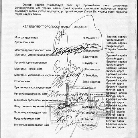 Эдгээр ноцтой үндэслэлүүд байх тул Ерөнхийлөгч таны санаачлан боловсруулсан Улс төрийн намын тухай хуулийн шинэчилсэн найруулгын төслийг дэмжихгүй гэдгээ үүгээр мэдэгдэж, уг төслөө Улсын Их хуралд өргөн барихгүй гэдэгт найдаж байна.