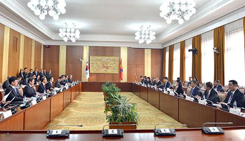 Уулзалтын дараагаар Монгол Улс, БНСУ-ын Ерөнхий сайд нар Төрийн ордонд албан ёсны хэлэлцээ хийж, хоёр орны болон бүс нутаг, олон улсын тавцан дахь харилцаа, хамтын ажиллагааг өргөжүүлэн хөгжүүлэх асуудлаар санал солилцлоо.