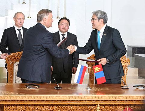 Мөн 2014 оны 8 сард Халхын голын тулалдааны ойг тэмдэглэхээр Монгол улсад хийсэн ОХУ-ын Ерөнхийлөгч Путины айлчлалын үеэр УБТЗ ХНН болон ОХУ-ын РЖД компанийн хооронд Стратегийн түншлэлийн гэрээ байгуулсан болно. Оросын талын үнэлснээр бол энэ гэрээгээр УБТЗ ХНН-ийн ирээдүйн 50 жилийн хөгжлийг тодорхойлсон гэж хэлж болно. Эдгээр Хэлэлцээрийг байгуулах нөхцлийг хангахад МУ-ын Ерөнхийлөгч Ц. Элбэгдорж, УИХ-ын дарга З. Энхболд, 2014 оны 7 дугаар сарын 1-ны өдрийн УИХ-ын нэгдсэн чуулганд оролцож саналаа өгсөн 53 гишүүн чухал үүрэг гүйцэтгэсэн. Ингэж хамтын хүчээр Монголчууд маш чухал, түүхэн Хэлэлцээрүүдийг байгуулж чадсан билээ.