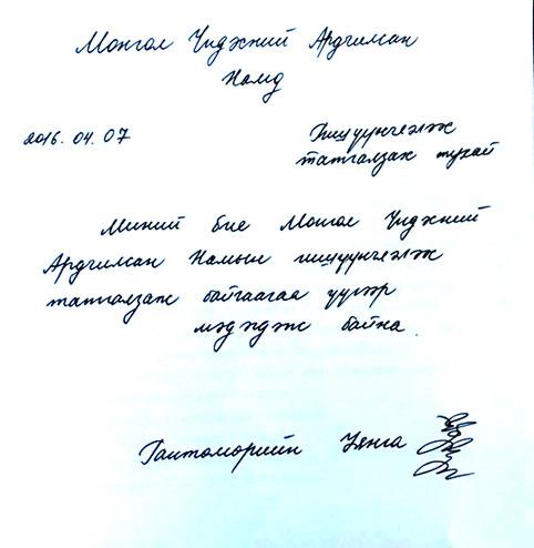 УИХ-ын гишүүн Г.Уянга, Л.Цог нар өнөөдөр "Шударга ёс" бүлгээсээ гарч буйгаа албан ёсоор мэдэгдсэн билээ. Тэгвэл гишүүн Г.Уянга өөрийнхөө намаасаа ч гарч буйгаа уламжлав.