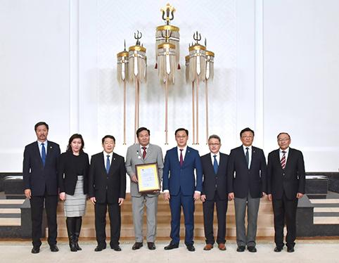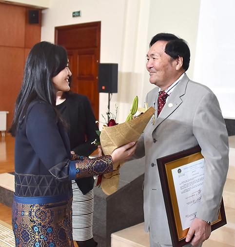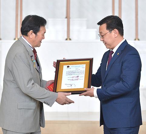Мөнгөн шагналын батламжийг Монгол Улсын Ерөнхий сайд Ж.Эрдэнэбат, Боловсрол, соёл, шинжлэх ухаан, спортын сайд Ж.Батсуурь нар гардуулав.