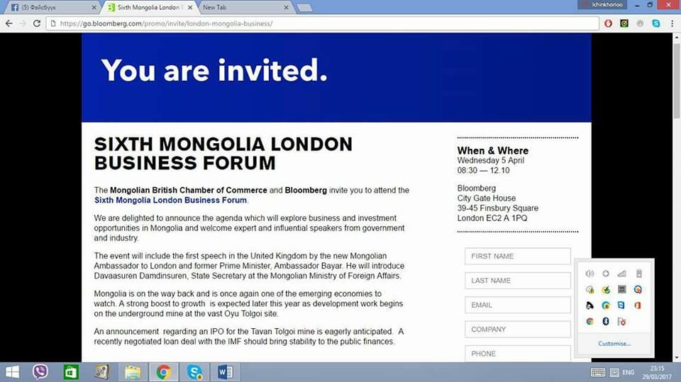 Энэ удаагийн Бизнес форумаар Монголд хөрөнгө оруулах боломжуудын тухай, Элчин сайд болон Гадаад Хэргийн Яамны Нарийн Бичиг үг хэлэх, ОТ -ийн гүний уурхай эхлэхээр оны эцсээр эдийн засгийн өсөлт дахин сэргэж сайжирах тухай,