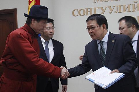 Монгол Улсын Ерөнхийлөгчийн сонгуульд МАХН-аас нэр дэвшигч Намбарын Энхбаяр Сонгуулийн Ерөнхий хорооны дарга Ч.Содномцэрэнд нэр дэвшигчийн материалуудаа гардуулж бүртгүүллээ.