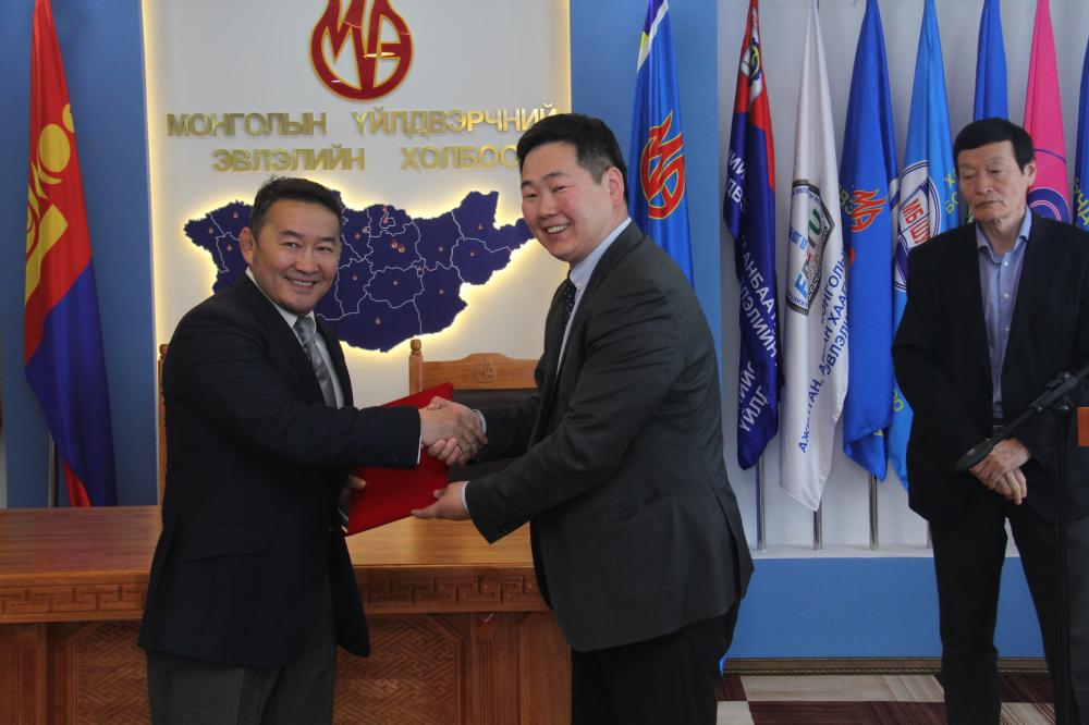 МҮЭ-ийн холбооноос Монгол Улсын Ерөнхийлөгчийн сонгуульд нэр дэвшигчдэд гардуулж өгч буй “Хөдөлмөрчдийн нийгмийн захиалга” баримт бичгийг тавдугаар сарын 30-нд МАХН-аас нэр дэвшигч С.Ганбаатар, тавдугаар сарын 31-нд МАН-аас нэр дэвшигч М.Энхболд нар гардан авсан байна.