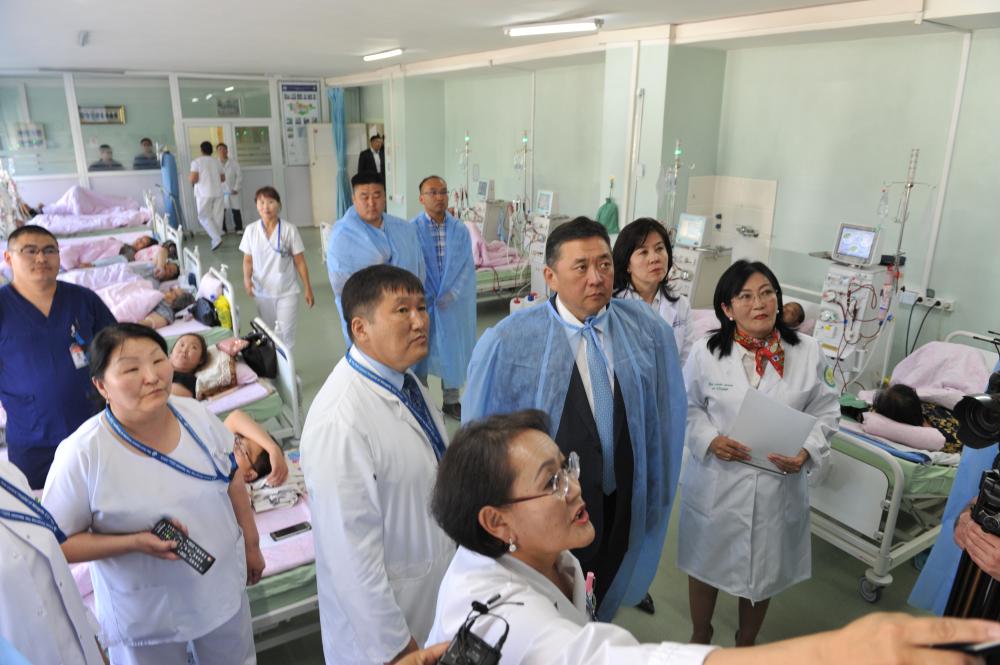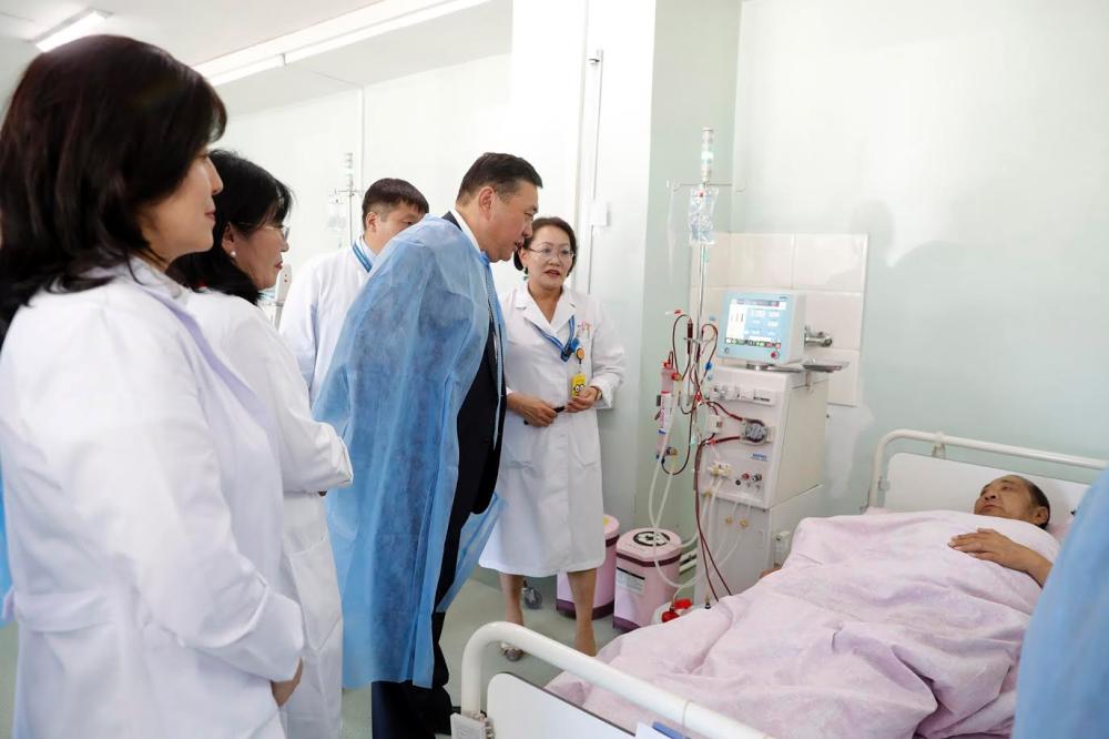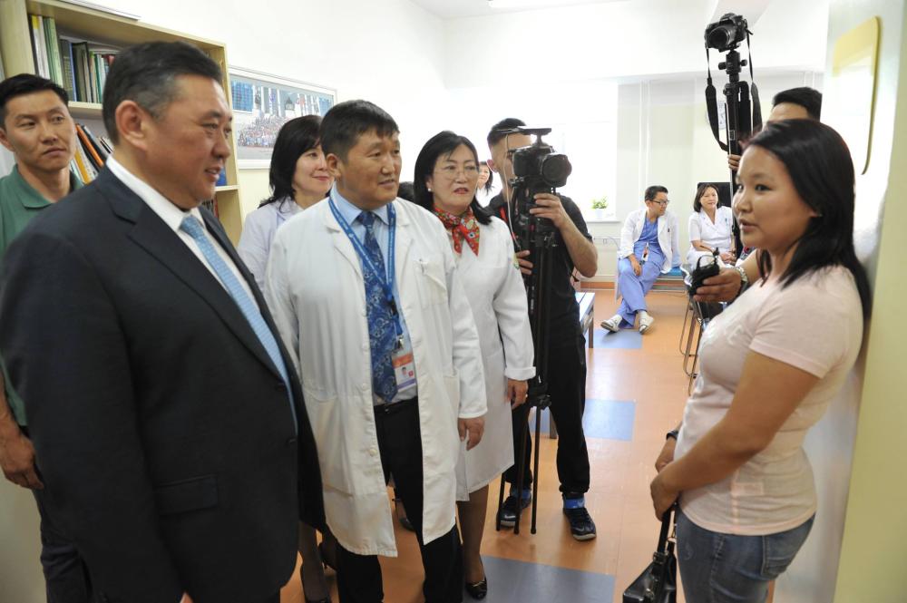 Ийнхүү эмч ажилтнуудтай уулзсаны дараа Ерөнхийлөгчид нэр дэвшигч М.Энхболд Улсын нэгдүгээр төв эмнэлгийн гемодиализийн тасаг болон эрхтэн шилжүүлэн суулгах төвийн үйл ажиллагаатай танилцаж, өвчтөнүүдтэй уулзаж, сэтгэлийн дэм өглөө. Монгол Улсад эрхтэн шилжүүлэн суулгах мэс заслыг өнгөрсөн тавдугаар сараас үнэ төлбөргүй болгосноор хоёр хүнд эрхтэн шилжүүлэн суулгаж, амь насыг нь аварсан байна. Л.Бүжинлхам охин элэгний өвчний улмаас долоон жил эмнэлгээр явсны эцэст элэг шилжүүлэн суулгах хагалгаанд оржээ. Түүний ээж Б.Оюунханд амь нас нь дээсэн дөрөөн дээр байсан охинд минь амьдрал бэлэглэсэн төр засагтаа баярлалаа хэмээж байв.