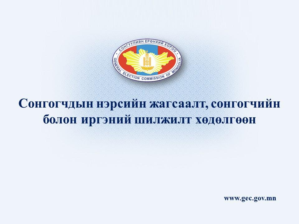 Монгол Улсын Ерөнхийлөгчийн сонгуулийн санал хураалтын өдөр энэ сарын 26-нд болно. Үүнтэй холбогдуулан сонгогчийн шилжилт хөдөлгөөнийг өнөөдрөөс эхлэн 14 хоногийн хугацаанд орон даяар зогсоолоо. Энэ нь байнга оршин суудаг газрынхаа сонгогчдын нэрсийн жагсаалтаас хасуулан өөр газар санал өгөхөөр бүртгүүлэхийг хориглож байгаа хэрэг. Хэрэв энэ хугацаанд шилжин ирсэн гэсэн сонгогчийг нэрсийн жагсаалтад бүртгэсэн сонгуулийн байгууллагын ажилтныг нэг сарын хөдөлмөрийн хөлсний доод хэмжээг зургаагаас найм дахин нэмэгдүүлсэнтэй тэнцэх хэмжээний төгрөгөөр торгох, төрийн албан хаагчийг төрийн албанаас халах гэсэн хариуцлага хүлээх юм байна.