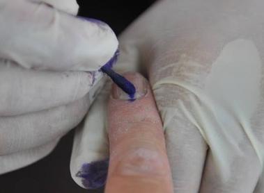 Нийслэлийн сонгогчдод саналаа өгснийг нь илэрхийлэх тусгай зориулалтын бэхэн тэмдэглэгээ хийж байна.