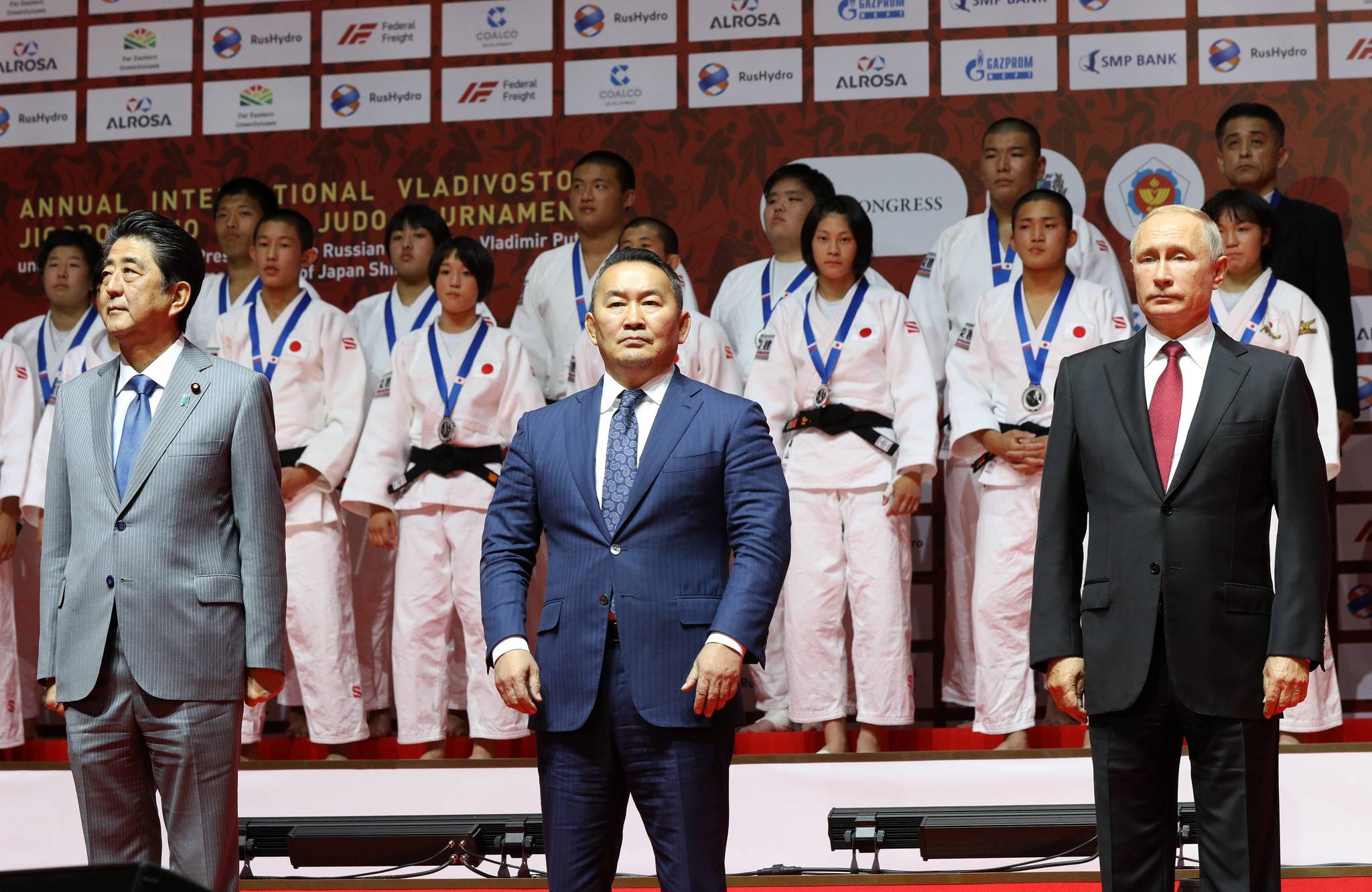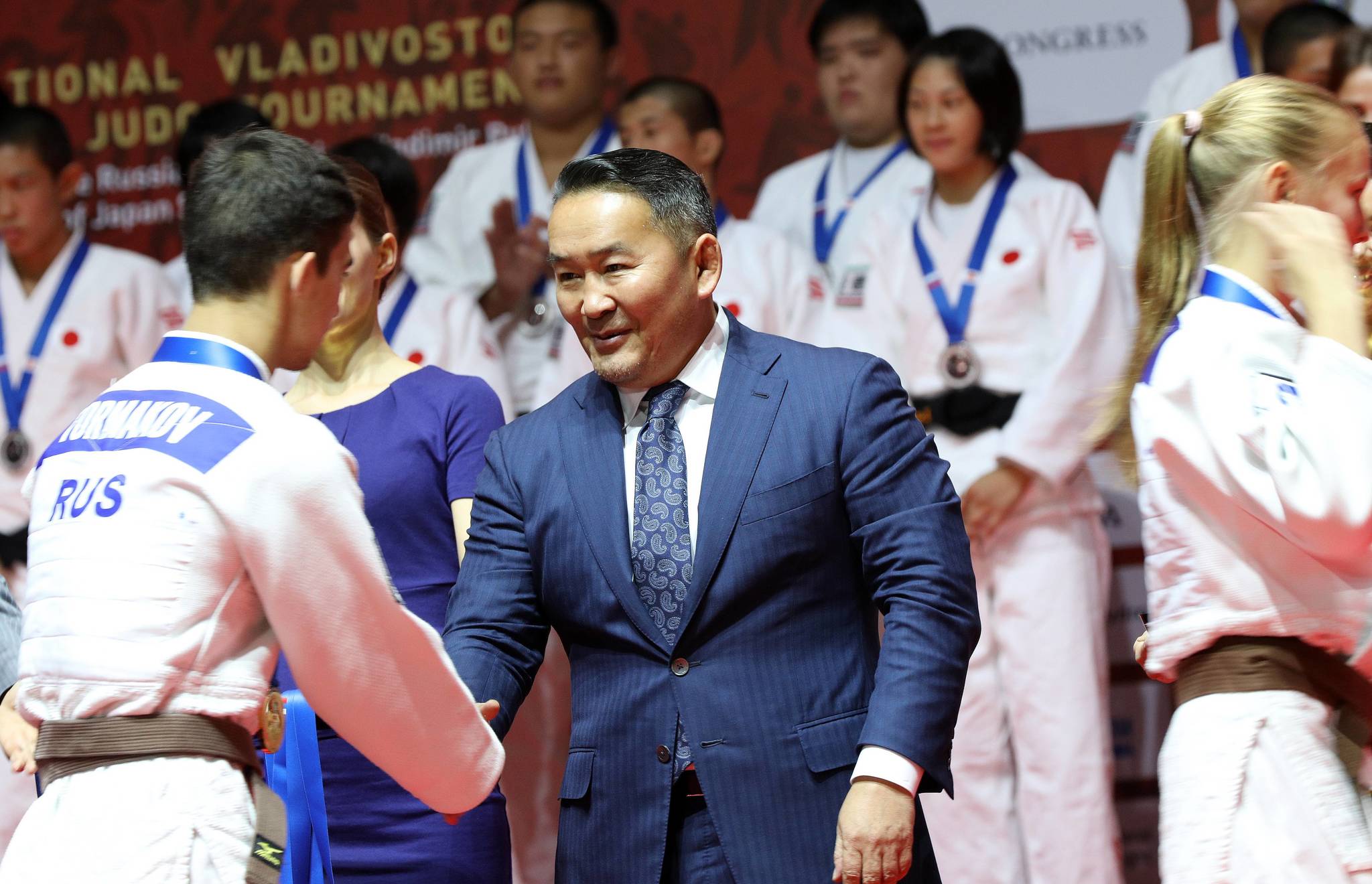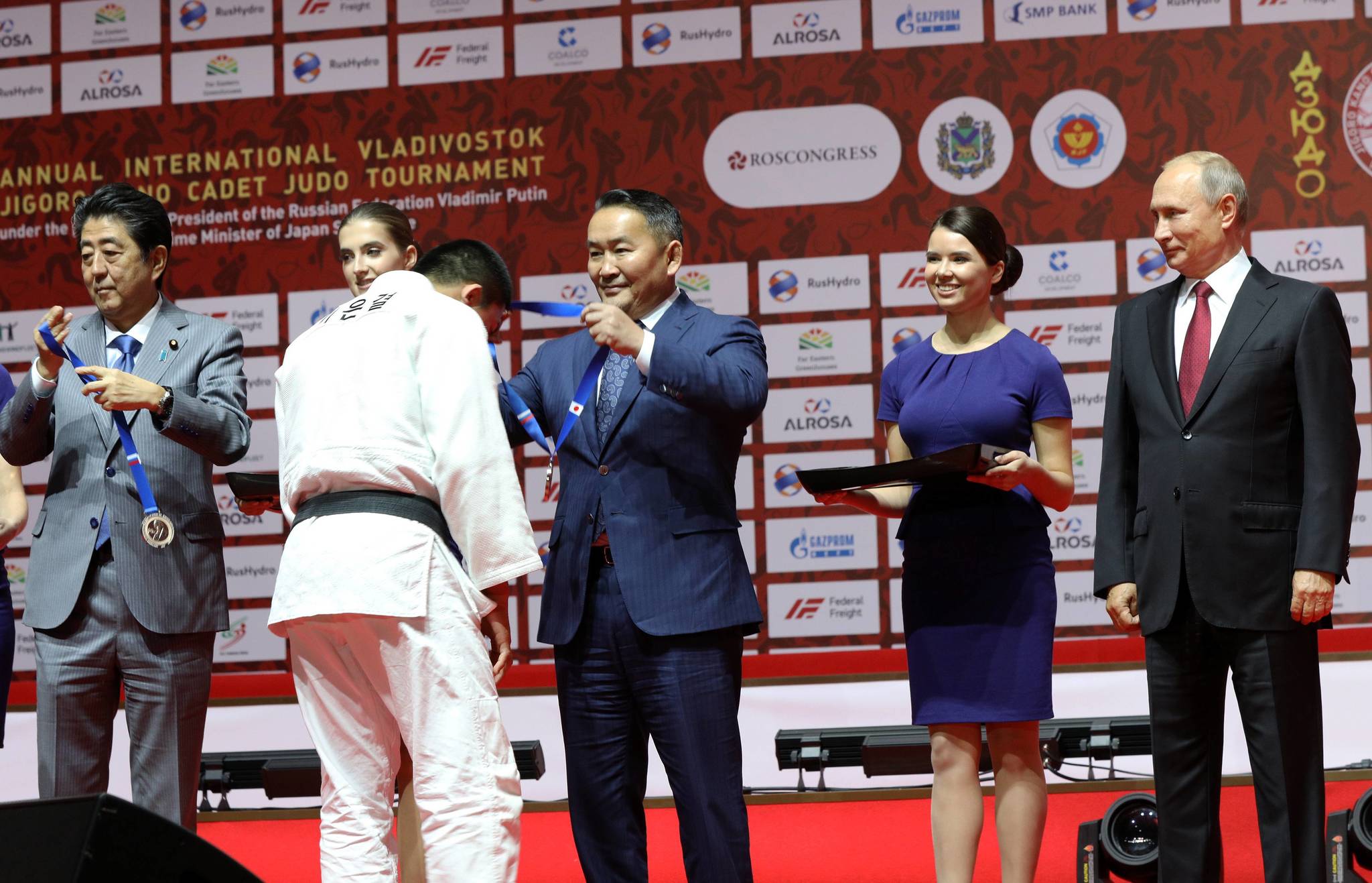 Монгол Улсын Ерөнхийлөгч Х.Баттулга ОХУ-ын Ерөнхийлөгч Владимир Путин, Японы Ерөнхий сайд Шинзо Абэ нарын хамтаар Дорнын эдийн засгийн IV чуулганы хоёр дахь өдөр болсон Өсвөрийн жүдо бөхийн тэмцээний финалын барилдаануудыг үзэж сонирхон, медальт байранд шалгарсан тамирчдын шагналыг гардуулав.