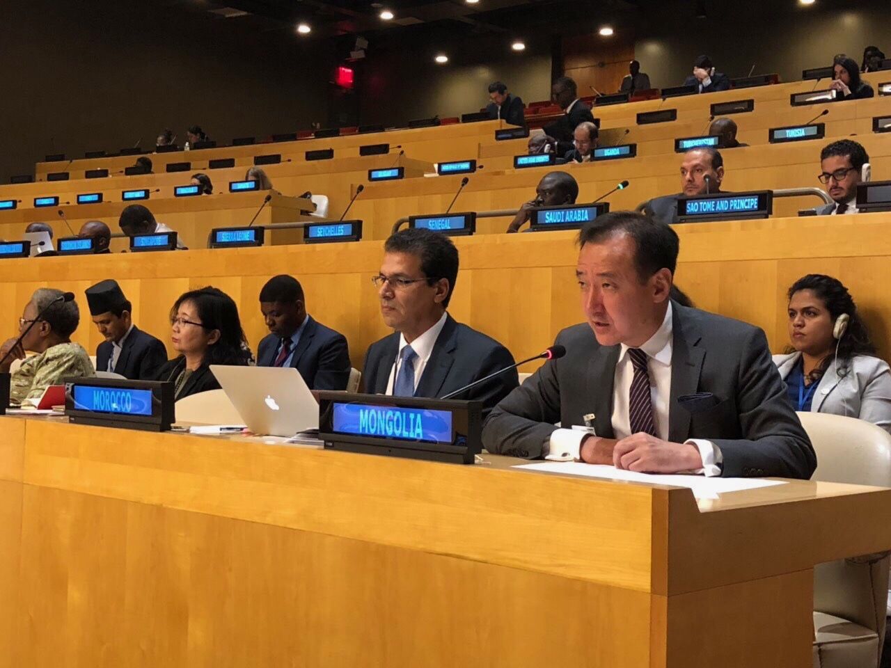 Монгол Улсын Гадаад харилцааны сайд Д.Цогтбаатар НҮБ-ын ЕА-н 73 дугаар чуулганы Ерөнхий санал шүүмжлэлийн үеэр 9 дүгээр сарын 27-ны өдөр болсон Хөгжиж буй орнуудын 77-гийн бүлгийн Гадаад хэргийн сайд нарын ээлжит уулзалтад оролцов. Энэхүү бүлэг нь эдийн засгийн хамтын сонирхлоо харилцан дэмжих, НҮБ-ын хүрээнд өрнөж буй олон улсын эдийн засаг, хөгжлийн гол асуудалд нэгдмэл байр сууринаас хандах, Өмнөд-Өмнөдийн хөгжлийн хамтын ажиллагааг дэмжих зорилготой юм.