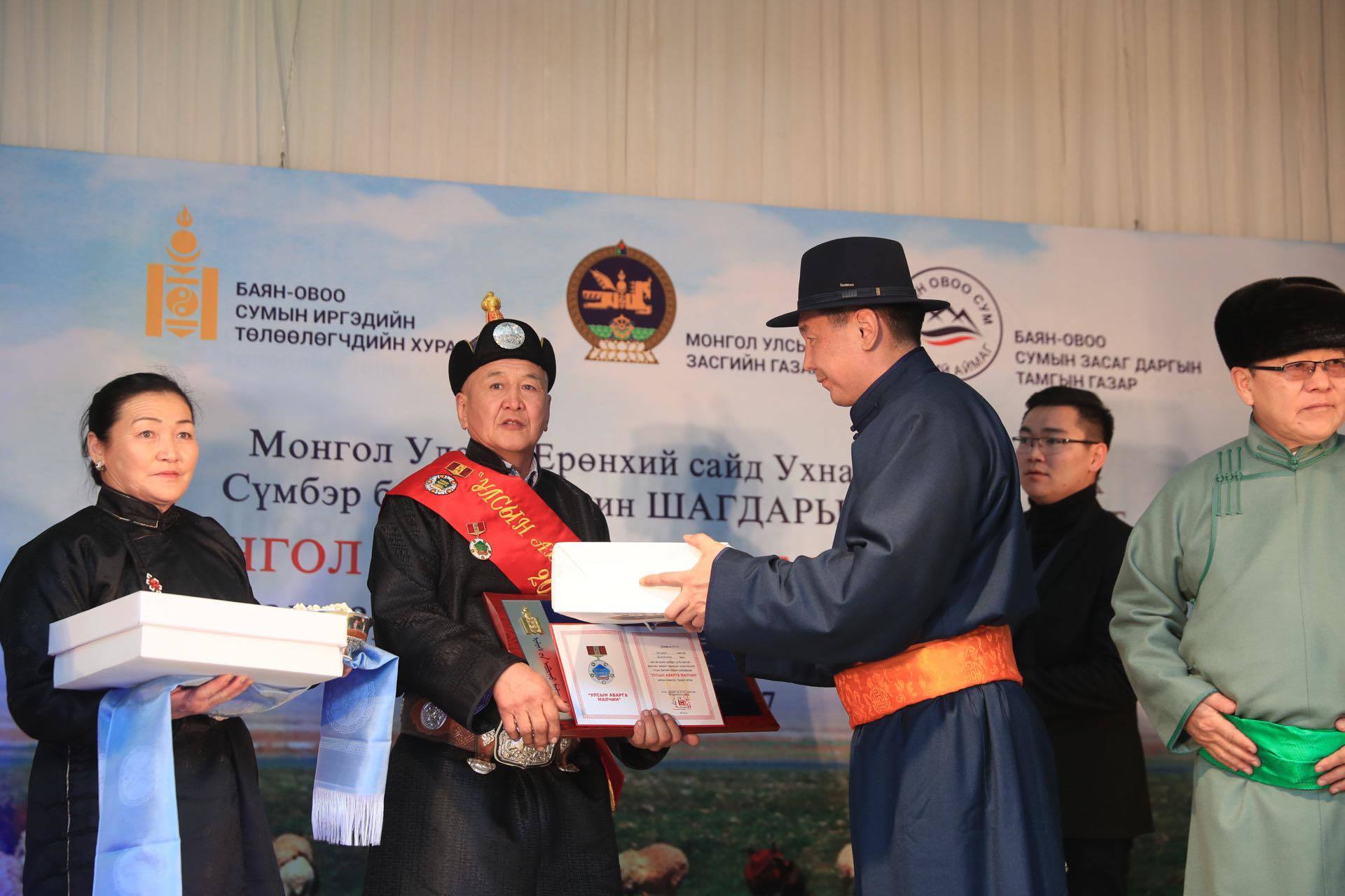 Монгол Улсын Ерөнхий сайд У.Хүрэлсүх Хэнтий аймгийн Баян-Овоо сумын Сүмбэр багийн малчин Шагдарын Батбаатарт “Улсын аварга малчин” цол тэмдэг, өргөө цагаан гэр, гарын бэлгийн хамт гардуулж өгөв. Улсын аварга малчин Ш.Батбаатар нь Хэнтий аймгийн Баян-Овоо суманд 1959 онд төрж, 1976 оноос Монголын Хувьсгалт Залуучуудын Эвлэлийн илгээлтээр “Алтан тал” нэгдлийн Сүмбэр бригадад хоньчноор ажлын гараагаа эхэлж өдгөө мал маллан амьдарч байна.