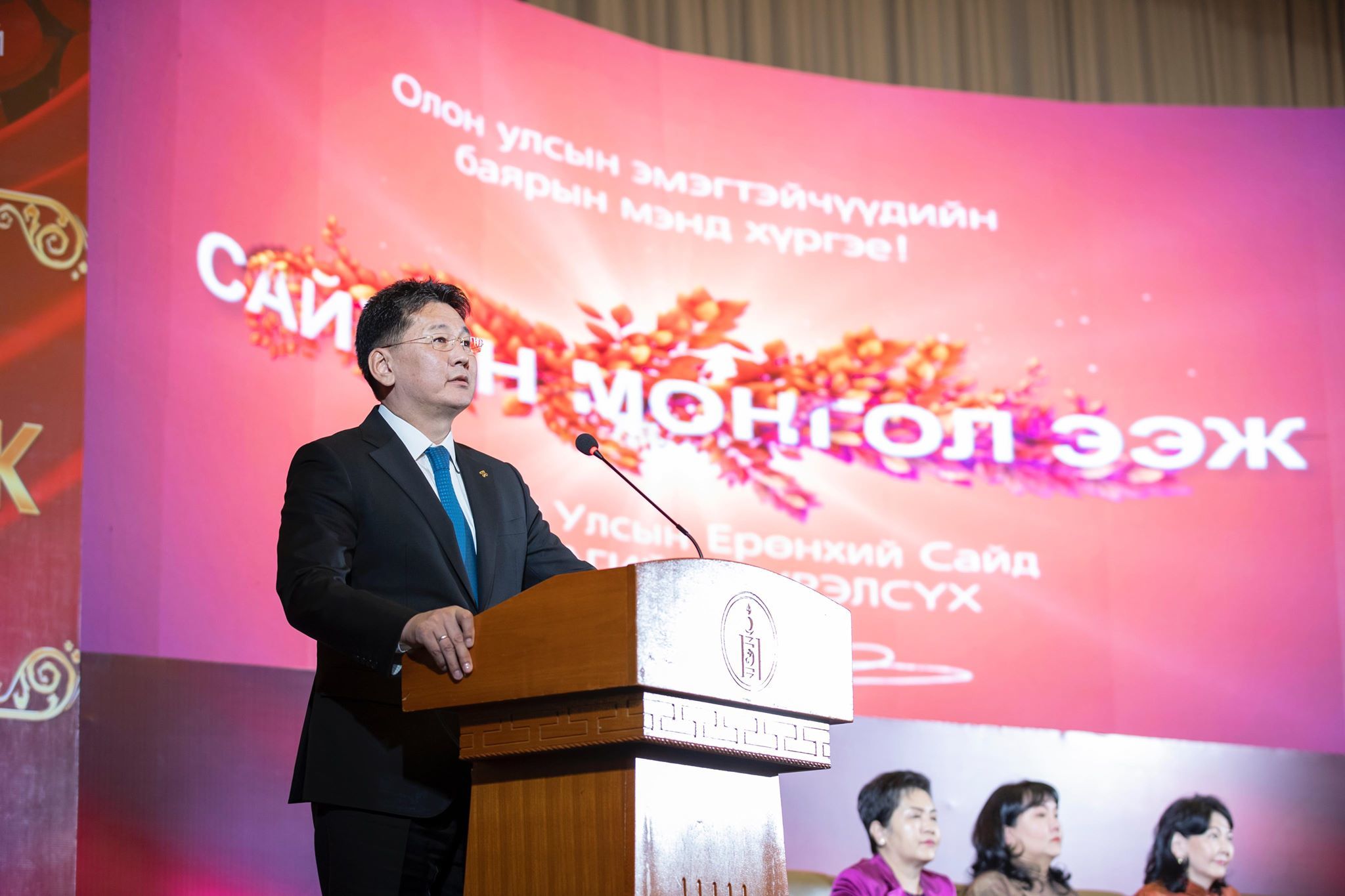 Олон улсын эмэгтэйчүүдийн баяр угтсан “Сайхан монгол ээж” 1000 ээжийн баяр Төрийн ордонд болов. Энэхүү арга хэмжээг УИХ, Засгийн газрын эмэгтэй гишүүд санаачилж, Монгол Улсын Ерөнхий сайдын ивээл дор зохион байгуулсан. Монгол Улсын Ерөнхий сайд хүрэлцэн ирсэн ээжүүдэд баярын мэнд хүргэж, үг хэлэхдээ охид, эмэгтэйчүүд, ээжүүдийн төлөө Засгийн газраас хийж хэрэгжүүлж байгаа болон төлөвлөж буй ажлын талаар танилцууллаа. Тэрбээр, Манай улс хүйсийн тэгш байдын үзүүлэлтээр дэлхийн 190 орноос 68 дугаар байрт бичигдэж байна. Энэ муу үзүүлэлт биш. Гэхдээ тайвширч болохгүй. Гэр бүлийн хүчирхийлэлд хамгийн ихээр өртөж байгаа хүмүүс бол манай охид, эмэгтэйчүүд байсаар л байна. Гэр бүлийн хүчирхийлэлтэй тэмцэх тухай хуулийг батлан хэрэгжүүлснээр энэ гэмт хэрэг буурч байна. Гэхдээ хүчирхийлэл байсаар л байна. Эмэгтэй хүн ойлгогдох гэж биш хайрлагдах гэж, зовох гэж биш жаргах гэж төрсөн гэдэг. Үүнтэй би санал нэг байдаг.