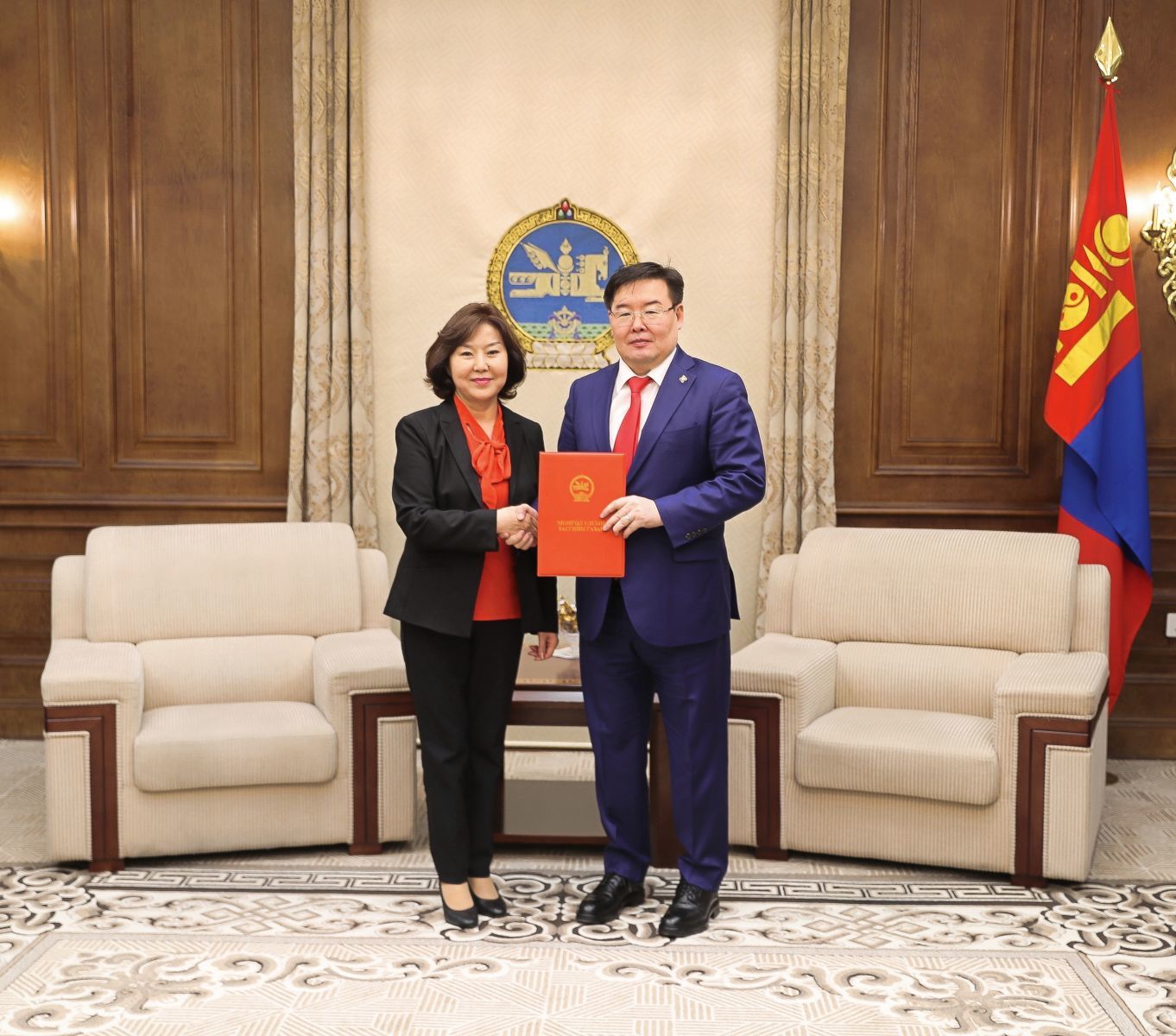 Монгол Улсын Засгийн газрын хуралдаанаар хэлэлцэн шийдвэрлэсэн Эм, эмнэлгийн хэрэглэгдэхүүний тухай хуулийн шинэчилсэн найруулгын төслийг УИХ-ын гишүүн, Эрүүл мэндийн сайд Д.Сарангэрэл Монгол Улсын Их Хурлын дарга Г.Занданшатарт өргөн барилаа.