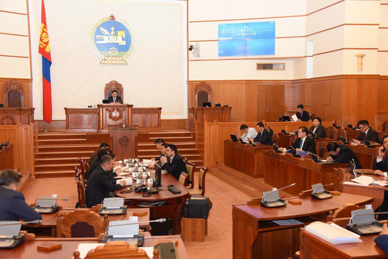 Улсын Их Хурлын 2019 оны намрын ээлжит чуулганы өнөөдрийн (2019.10.18) нэгдсэн хуралдаан 10 цаг 34 минутад эхэлж, хэлэлцэх асуудлаа батлав. Чуулганы нэгдсэн хуралдаанаар эхлээд Өмгөөллийн тухай хуулийн төсөл болон хамт өргөн мэдүүлсэн хуулийн төслүүдийн эцсийн хэлэлцүүлгийг хийлээ.
