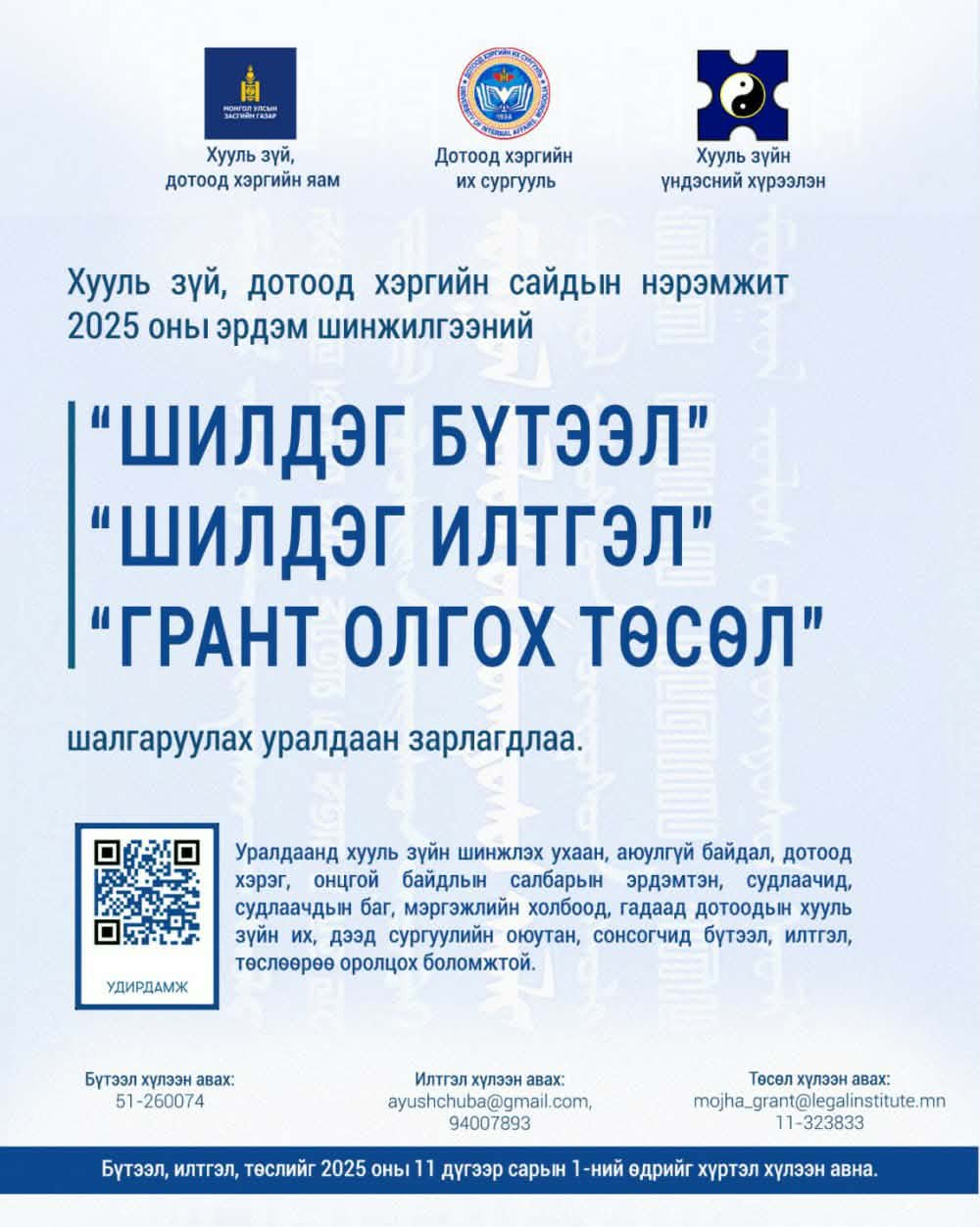 Хууль зүйн салбарын эрдэм шинжилгээний бүтээлийн уралдаан зарлагдлаа