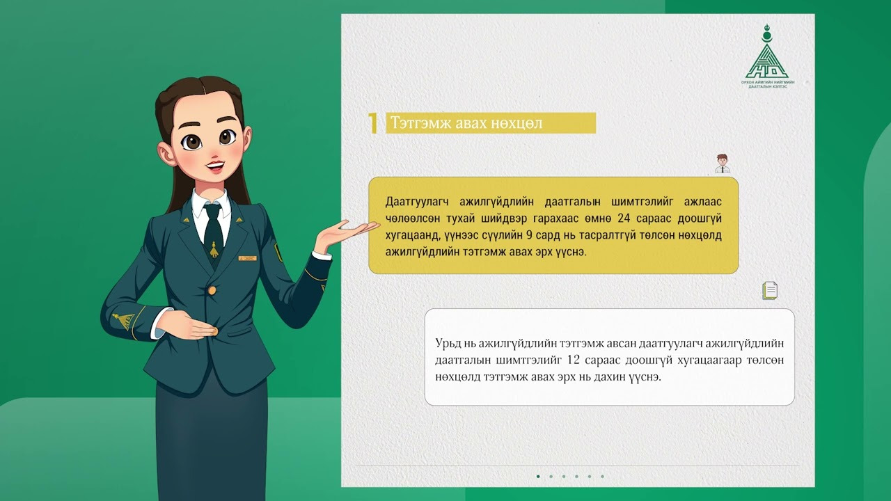 - Тэтгэмжийн даатгал (өвчин, жирэмслэлт гэх мэт)