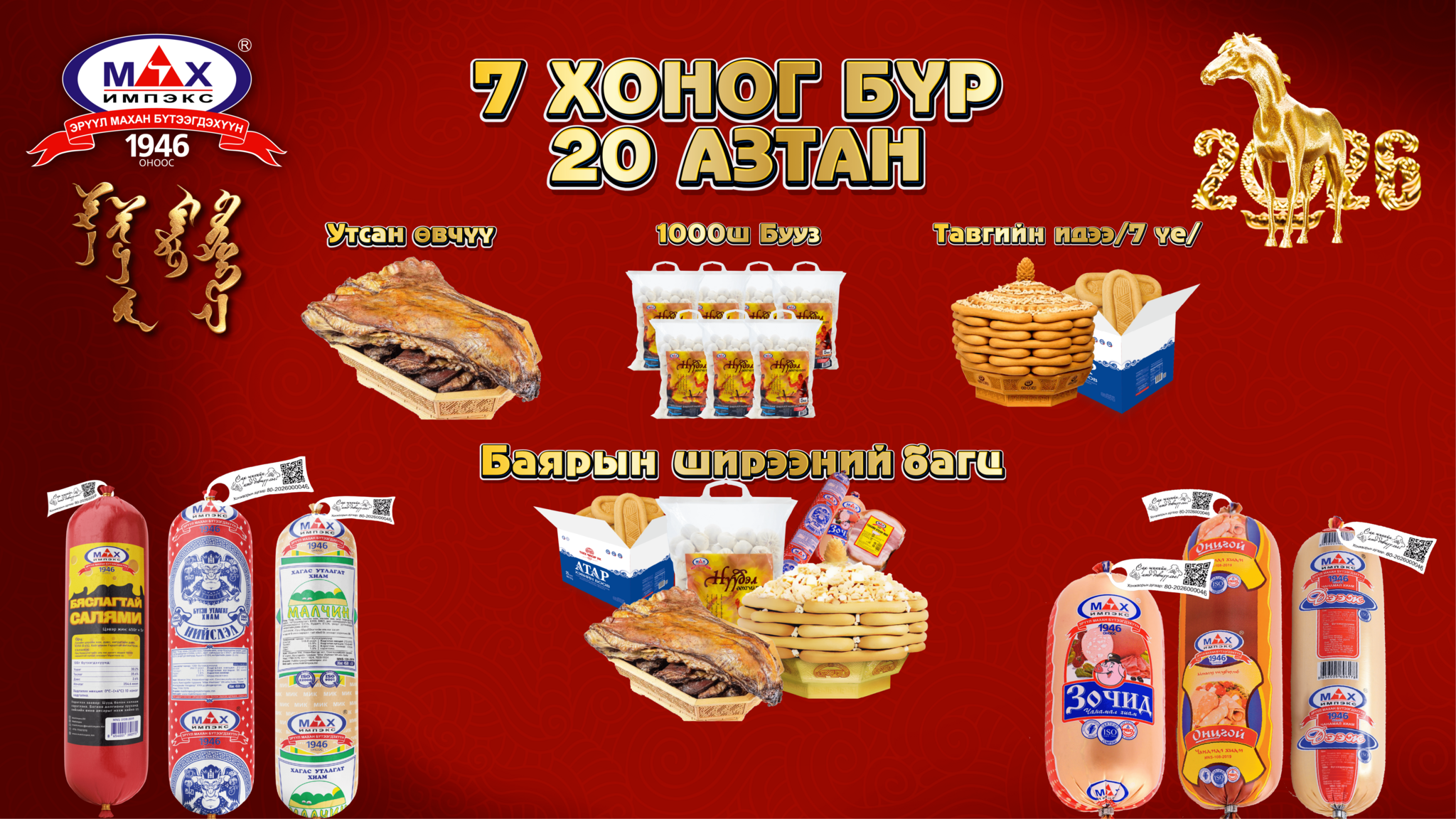 Тэртээ 1946 онд Нийслэл хотын хүн амыг мах махан бүтээгдэхүүнээр хангах зорилгоор үүсгэн байгуулагдсан үндэсний ууган үйлдвэрлэгч “Мах Импэкс” ХК түүхт 80 жилийн ойгоо угтаж нийт хэрэглэгчдэдээ зориулан 80 азтантай урамшуулалт хөтөлбөр зарлажээ.