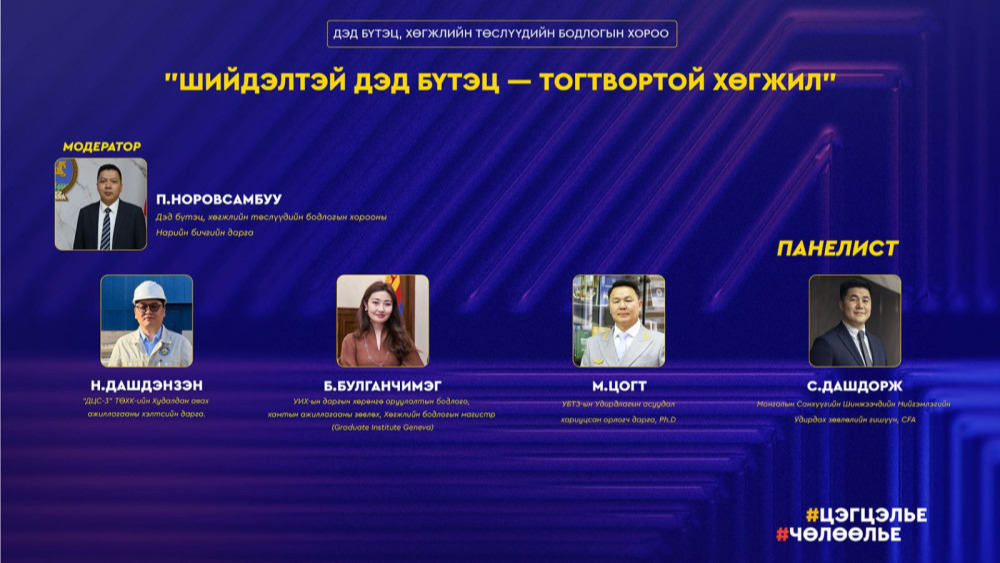 Бодлогын хороодын салбар хуралдааны модератор, панелистуудыг танилцуулж байна.