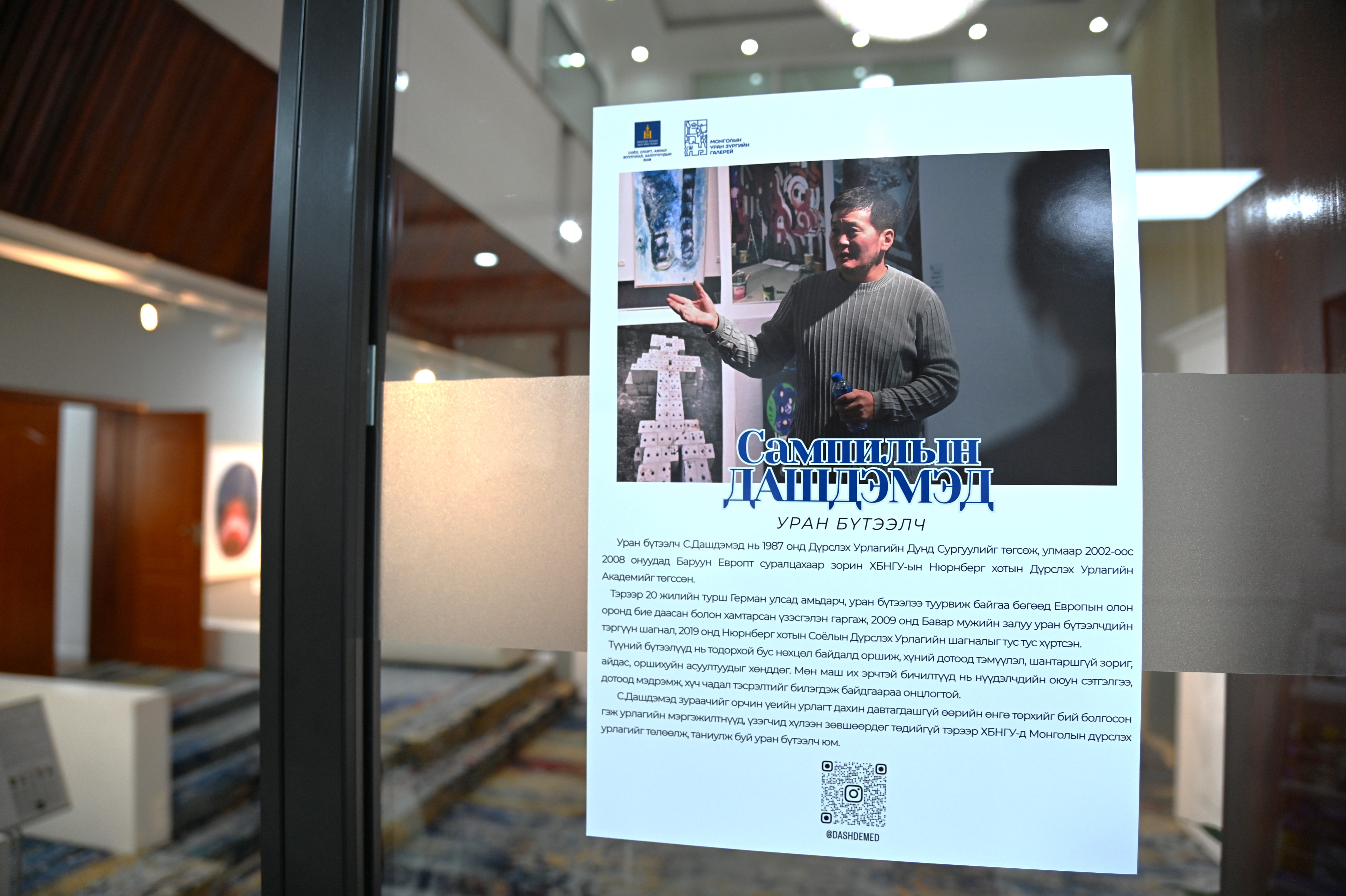 Уран бүтээлч С.Дашдэмэд нь 1987 онд Дүрслэх Урлагийн Дунд Сургуулийг төгсөж, улмаар 2002-2008 онуудад Баруун Европт суралцахаар зорин ХБНГУ-ын Нюрнберг хотын Дүрслэх Урлагийн Академийг төгссөн. Тэрээр 20 жилийн турш Герман улсад амьдарч, уран бүтээлээ туурвиж байгаа бөгөөд Европын олон оронд бие даасан болон хамтарсан үзэсгэлэн гаргаж, 2009 онд Бавар мужийн залуу уран бүтээлчдийн тэргүүн шагнал, 2019 онд Нюрнберг хотын Соёлын Дүрслэх Урлагийн шагналыг тус тус хүртсэн. ХБНГУ-д Монголын дүрслэх урлагийг төлөөлж, таниулж буй уран бүтээлч юм.