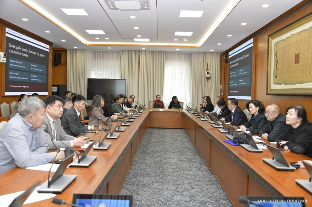Эл хэлэлцүүлгийг Улсын Их Хурлын даргын 523 дугаар захирамжийн хүрээнд байгуулагдсан Байгаль орчин, ногоон хөгжлийн асуудлаар санал, дүгнэлт гаргах, холбогдох хууль тогтоомжийн төсөл боловсруулах үүрэг бүхий ажлын хэсгээс өнөөдөр /2026.03.30/ Төрийн ордны “Их засаг” танхимд зохион байгуулав.
