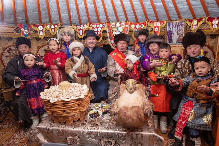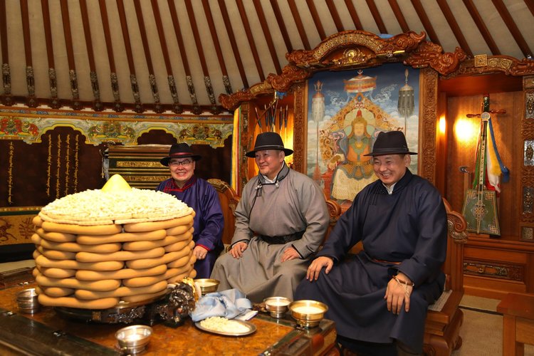 XVII жарны “Урвуулагч” хэмээх Шарагчин гахай жилийн хаврын тэргүүн сарын шинийн нэгний өглөө Монгол Улсын Ерөнхийлөгч Х.Баттулга, Монгол Улсын Их Хурлын дарга Г.Занданшатар, Монгол Улсын Ерөнхий сайд У.Хүрэлсүх нар Төрийн ордноо ахмад буурлуудаа хүндэтгэн амар мэндийг нь айлтган золгож, хөөрөг зөрүүлэв.