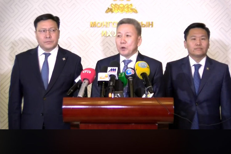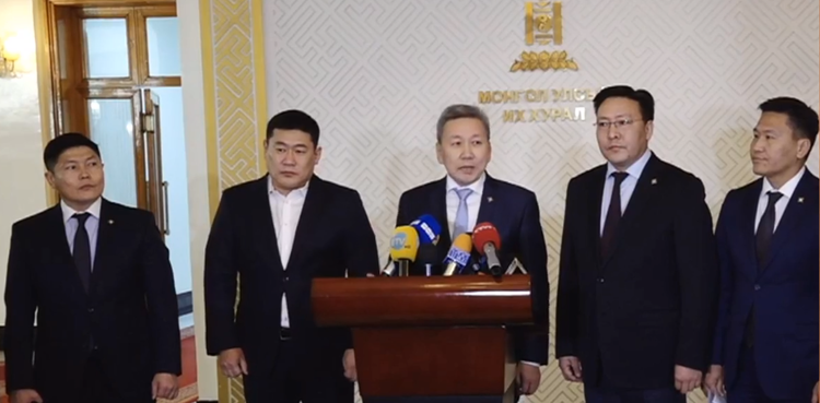 УИХ-ын гишүүн Л.Оюун-Эрдэнэ, Т.Аюурсайхан, Ж.Батзандан, Л.Болд нар "МАНАН дэглэмийн эсрэг монгол түмний нэгдэл" эсэргүүцлийн жагсаалын талаар мэдээлэл хийж байна