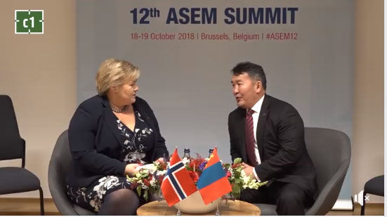 Бельги улсад болж буй Ази-Европын дээд хэмжээний 12 дугаар уулзалтад оролцож байгаа Монгол Улсын Ерөнхийлөгч Х.Баттулгад Норвегийн Хаант улсын Ерөнхий сайд Эрна Солберг бараалхав