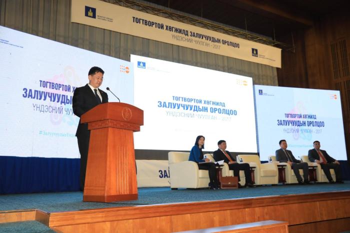 Монгол Улсын Ерөнхий сайдын ивээл дор Хөдөлмөр, нийгмийн хамгааллын яам, Гэр бүл хүүхэд залуучуудын хөгжлийн газар хамтран “Тогтвортой хөгжилд залуучуудын оролцоо” үндэсний чуулганыг Төрийн ордонд зохион байгуулж байна.