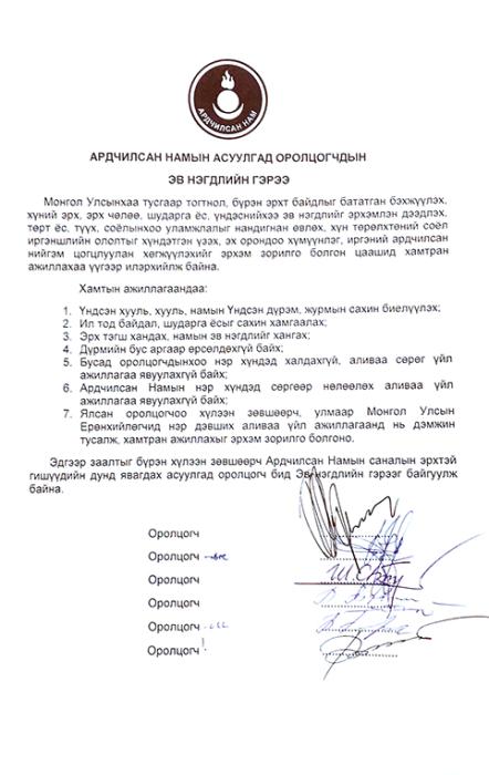 АРДЧИЛСАН НАМЫН АСУУЛГА ЭХЭЛЛЭЭ