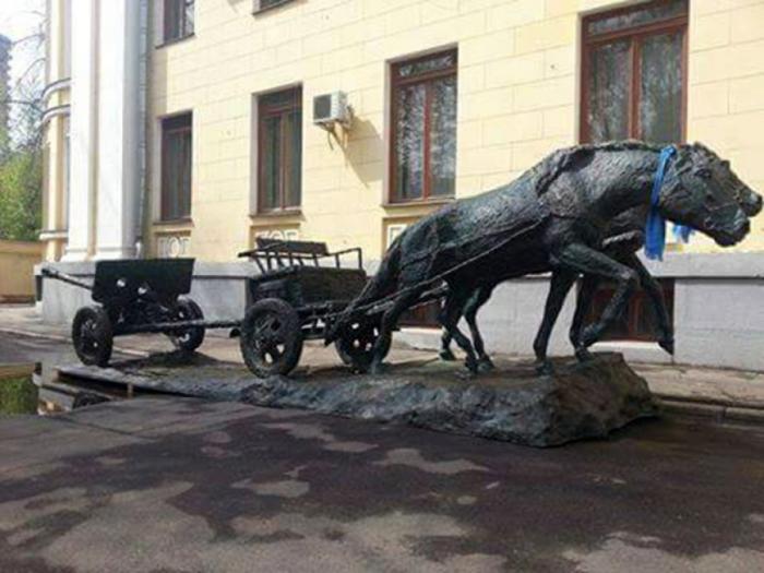 Дайны үед Улаан армийн таван морь тутмын нэг нь монгол морь байсан юм. Хөшөөнд их буу чирэн зүтгэж байгаа хоёр монгол морийг дүрсэлсэн юм байна.
