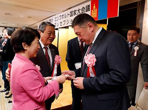 Уулзалтын үеэр Монгол Улсын Их Хурлын дарга М.Энхболд хэлсэн үгэндээ арга хэмжээг хамтран зохион байгуулж буй найрамдлын нийгэмлэгүүдийн гишүүдэд талархал илэрхийлээд Монгол-Японы хооронд дипломат харилцаа тогтоосны 45 жилийн ойн баярын мэндчилгээ дэвшүүлж, сакура цэцэглэх цагаар айлчлал хийж буйдаа бэлгэшээж байна гэв.