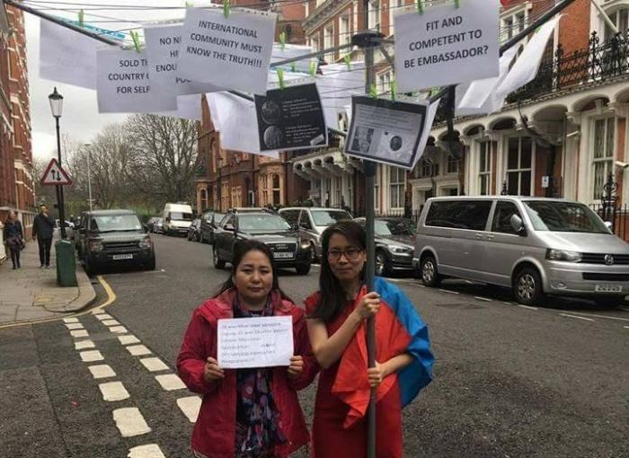 Хоёр монгол бүсгүй Лондонд С.Баярыг эсэргүүцэж ”жагсчээ”