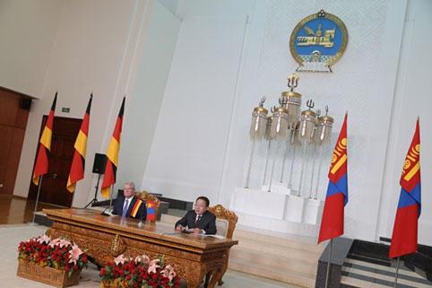 Монгол Улсын Ерөнхийлөгч Ц.Элбэгдорж, ХБНГУ-ын Холбооны Ерөнхийлөгч Иоахим Гаук нар хэвлэл мэдээллийн төлөөлөгчдөд зориулан мэдээлэл хийв