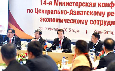 Төв Азийн бүс нутгийн эдийн засгийн хамтын ажиллагааны хөтөлбөрийн Сайд нарын XIV уулзалтад Ерөнхий сайд Ч.Сайханбилэг, Азийн хөгжлийн банкны Ерөнхийлөгч Такехико Накао болон Төв Азийн бүс нутгийн эдийн засгийн хамтын ажиллагааны хөтөлбөр (CAREC)-ийн гишүүн, улс орнуудын сайд нар оролцож орнуудын эдийн засгийн хөгжилд нөлөөлж буй хөгжлийн асуудлаар саналаа