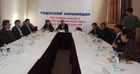 Улс төрийн намууд хамтарч “Үндэсний зөвшилцөл” уулзалт хийж, Үндсэн хууль, Сонгуулийн хуулийн асуудал болоод улс төрийн намуудын санхүүжилтийг төрөөс гаргуулах тухай ярилцсан. Тэгвэл уулзалтаар 22 намын төлөөллийг багтаасан ажлын хэсэг байгуулж, өчигдөр хуралдан хэд хэдэн санал гаргажээ. Сонгуулийн тухай хуулийг өөрчлөх цаг хугацаа үлдээгүй учир одоогийн үйлчилж буй хуульд нэмэлт,