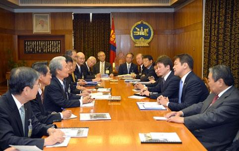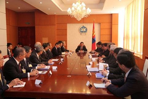 Монгол Улсын Ерөнхийлөгч Цахиагийн Элбэгдорж өнөөдөр Японы Эдийн засгийн байгууллагуудын холбоо буюу КЭЙДАНРЭН-ийн Ерөнхийлөгч Садаюки Сакакибара тэргүүтэй төлөөлөгчдийг хүлээн авч уулзлаа. Уулзалтад Гадаад хэргийн сайд Л.Пүрэвсүрэн, Монгол Улсаас Япон Улсад суугаа Онц бөгөөд Бүрэн эрхт Элчин сайд С.Хүрэлбаатар болон албаны бусад хүмүүс байлцав.