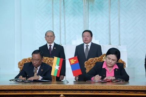 Монгол Улсын Ерөнхийлөгч Ц.Элбэгдорж, Мьянмарын Холбооны Бүгд Найрамдах Улсын Ерөнхийлөгч У Тейн Сейн нар өргөтгөсөн хэлэлцээ хийсний дараа Төрийн ордны Ёслол, хүндэтгэлийн Их танхимд Баримт бичигт гарын үсэг зурах ёслол болов. Уг ёслолын арга хэмжээнд Монгол Улсын Ерөнхийлөгч Ц.Элбэгдорж, Мьянмарын Холбооны Бүгд Найрамдах Улсын Ерөнхийлөгч У Тейн Сейн нар оролцлоо.