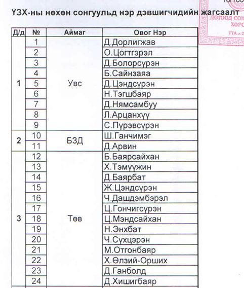 Ардчилсан намын ҮЗХ-ны гишүүний нөхөн сонгуульд нэр дэвшигчдийн нэрсийг баталлаа