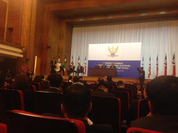 “Монголын ардчилсан хувьсгал-25” эрдэм шинжилгээний бага хурал өнөөдөр /2014.12.05/ төрийн ордонд болж байна. Энэхүү хуралд Улсын Их Хурлын дарга, Ардчилсан намын дарга З.Энхболд оролцож үг хэллээ.